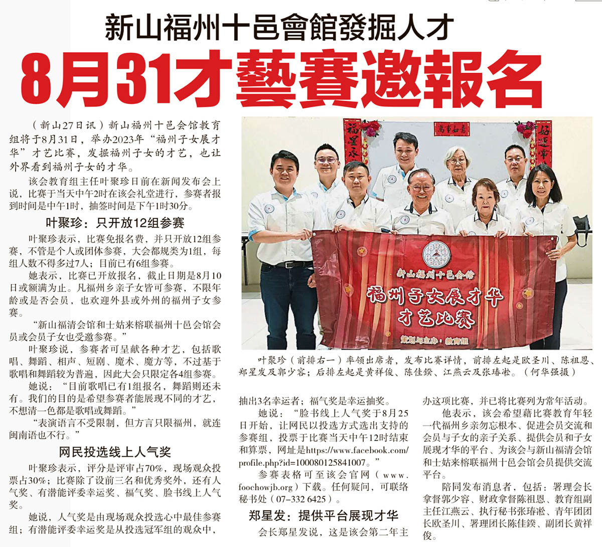 新山福州十邑会馆发掘人才-8月31才艺赛邀报名