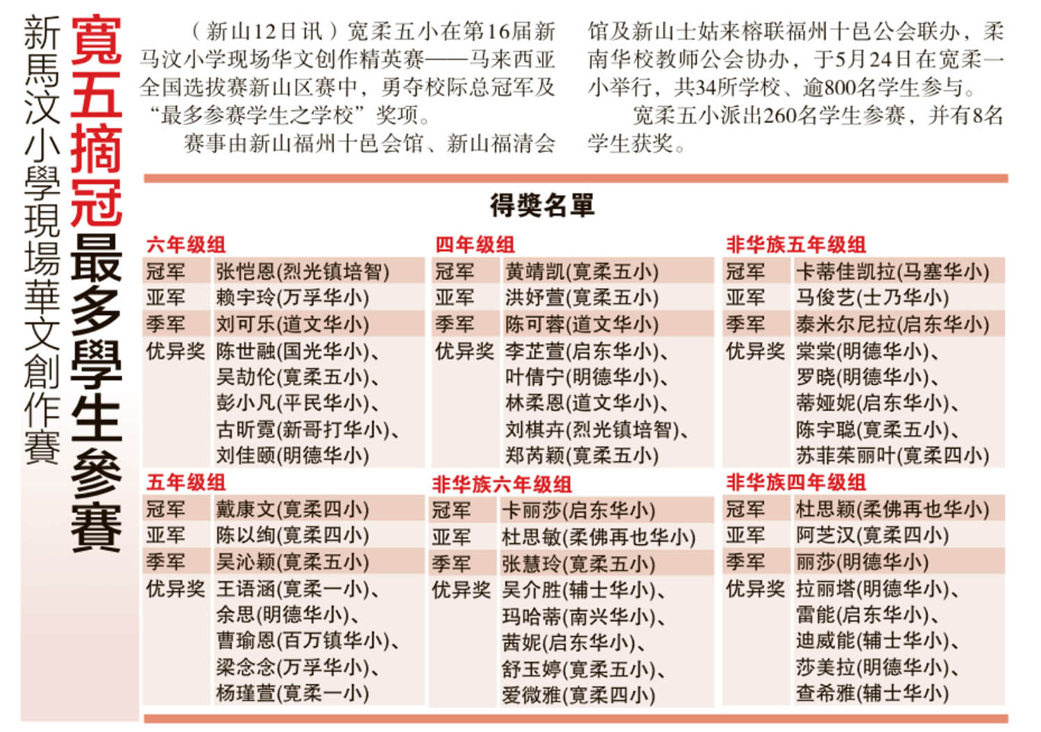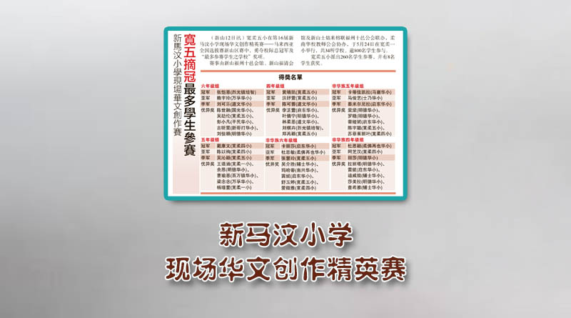 新马汶小学现场华文创作赛-宽五摘冠最多学生参赛