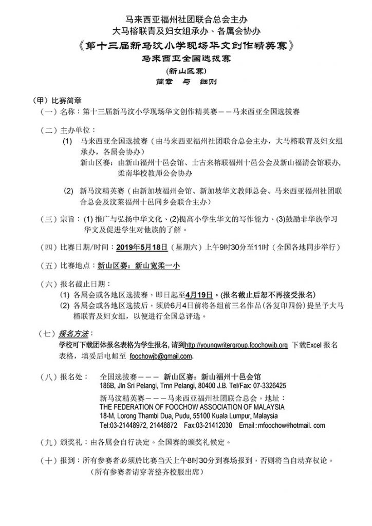 • 新马汶小学现场华文创作赛-5月举行接受报名 →