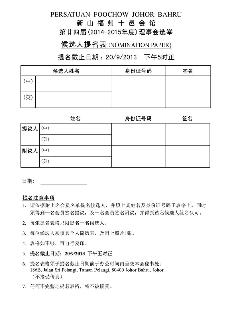第廿四届(2014-2015年度)理事会选举候选人提名表格