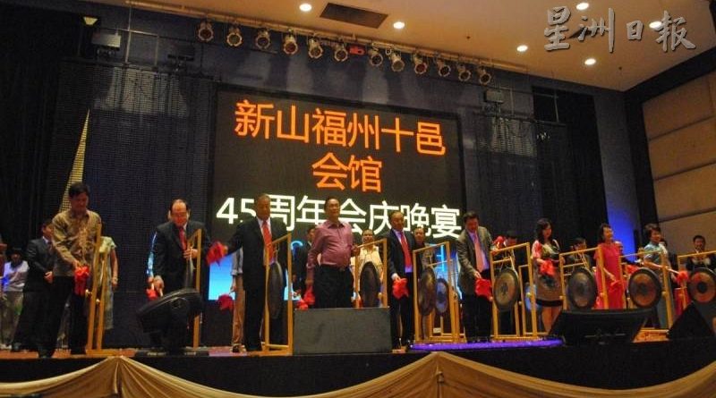 (柔佛‧新山13日訊)新山福州十邑會館昨晚舉行創會及婦女組成立45周年和青年團成立35周年會慶晚宴,宴開102桌,千人共襄盛舉。