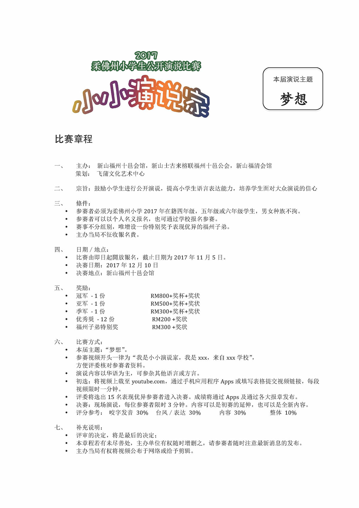 欢迎小四至小六谈梦想-来当“小小演说家”