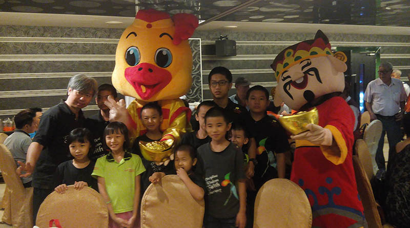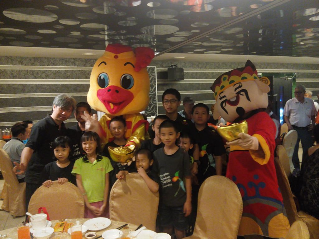 大会现场也安排了财神爷及吉祥鸡和与会者共庆新春佳节。在共享美食之余,也在新一年来临之际,为弱势群体献上温暖及关怀。